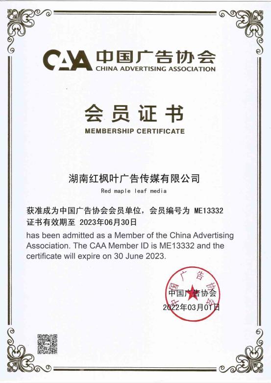 紅楓葉傳媒正式加入中國廣告協(xié)會(huì)
